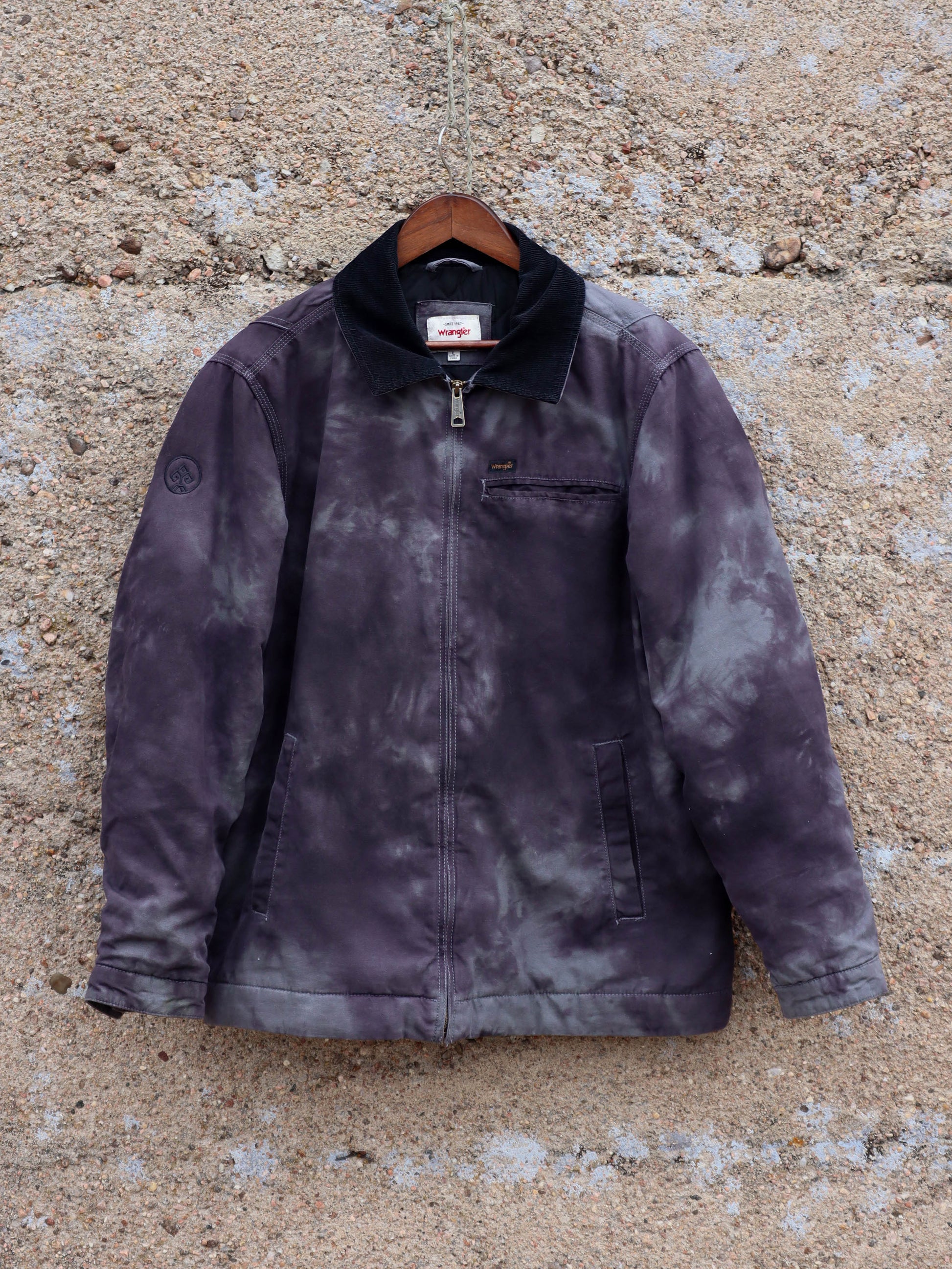 Smoky black and grey work jacket with plush lining ready for chilly weather.